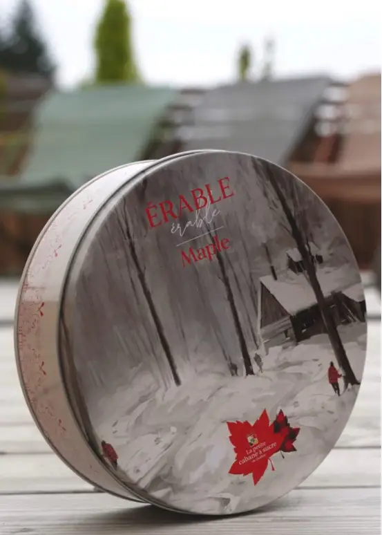 Bringen Sie einen authentischen Hauch kanadischen Flairs in Ihr Zuhause mit dieser eleganten runden Metallbox in den ikonischen Farben Kanadas. Mit einem Durchmesser von 16 cm eignet er sich ideal zur Aufbewahrung von Bonbons, Keksen oder anderen Süßigkeiten. Es ist vielseitig und dekorativ und kann auch zur Herstellung eines einzigartigen Garniturkorbs verwendet werden, der sich perfekt zum Anbieten einer Auswahl kanadischer Lebensmittelprodukte eignet. Diese Box ist ein praktischer, robuster Gegenstand mit gepflegter Ästhetik und soll Liebhaber kanadischer Produkte begeistern.