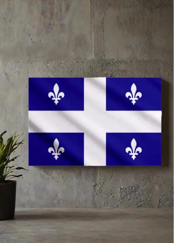 Diese 90 x 150 cm große Flagge ist mit leuchtenden Farben bedruckt, die das charakteristische Blau und Weiß von Quebec perfekt einfangen. Es verfügt über verstärkte Ösen, die eine einfache Befestigung an einem Fahnenmast oder einer anderen Oberfläche ermöglichen und so eine stilvolle und sichere Präsentation gewährleisten. Ganz gleich, ob Sie Ihren Garten, einen Gewerberaum oder einen Empfangsraum dekorieren möchten, diese Polyesterflagge ist die ideale Wahl für alle, die stolz die Symbole von Quebec zur Schau stellen möchten.