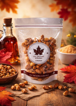 Gönnen Sie sich eine genussvolle Auszeit mit unserem Ahorn-ErdnüsseWir haben große, sorgfältig geröstete Erdnüsse ausgewählt, die perfekt zu unserem regionalen Spezialprodukt passen. Das Ergebnis? Eine einzigartige, karamellisierte Textur, die im Mund knackt, bevor sie das volle Aroma von Ahornsirup freisetzt.