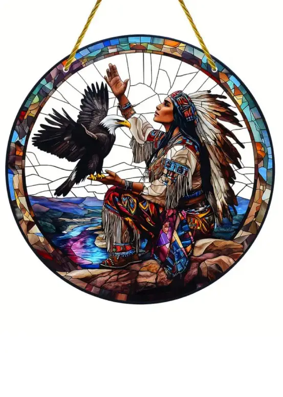 Stellen Sie sich eine Indianerin vor, ein Symbol der Stärke und Verbundenheit mit der Erde, neben einem Steinadler, dem Boten des Himmels. Seine Größe (genauer gesagt etwa 20 x 20 cm) ermöglicht es ihm, überall seinen Platz zu finden, ohne sich jemals aufzudrängen.