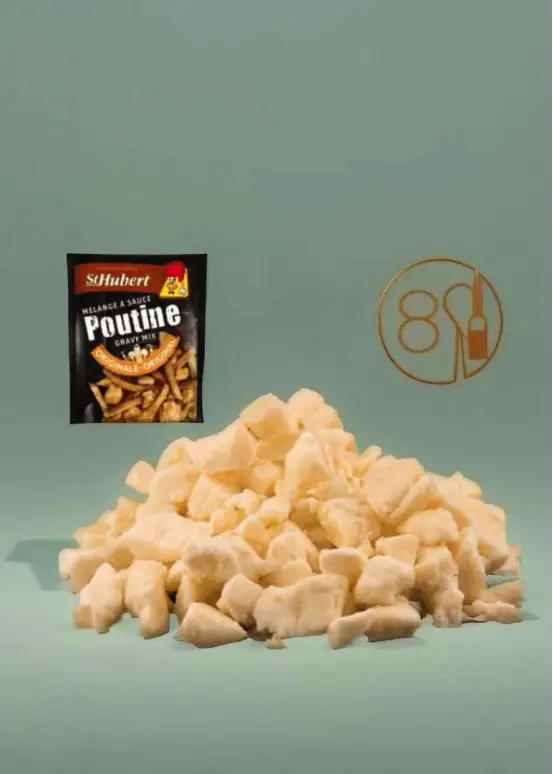 Complete kit for the preparation of a poutine like in Quebec. With 2 sachets of poutine sauce St Hubert of 52 g and 1 kg cheese for poutine.