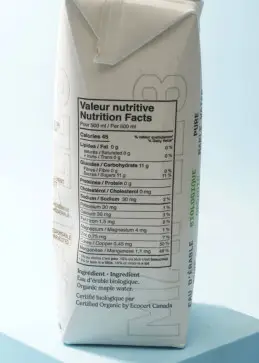 Maple 3 Agua de Arce Orgánica hidrata dos veces más rápido que el agua, una bebida ideal para personas activas y conscientes de la salud. savia de arce es delicioso en sabor y muy bajo en calorías.