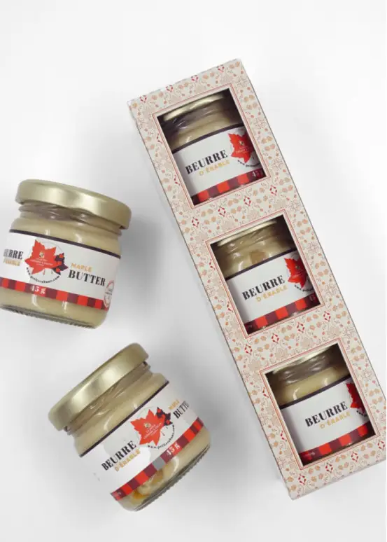 Un surtido gourmet de tres pequeños tarritos de mantequilla de arce, de 45 g cada uno, una delicia para compartir…. Este trío es realmente genial para aquellos que aman los pequeños caprichos. Cada frasco contiene una suave mantequilla de arce, elaborada según la más pura tradición quebequense.