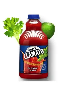 La marca Clamato Mott's se hizo famosa gracias a su cóctel de zumo de tomate. En su nombre, hay almeja por almejas (almeja en inglés) y tomate por tomate. Estos son los 2 ingredientes esenciales de esta bebida. En realidad, la receta se prepara con caldo de almejas, una mezcla de especias y jugo de tomate. El original zumo de tomate cóctel se presenta en una botella de 1,89 litros. Es el formato perfecto para tus veladas de cócteles con varias personas. También es muy bueno solo, durante una barbacoa soleada con tu familia y tus seres queridos.