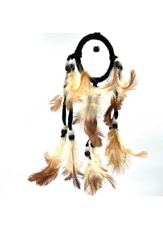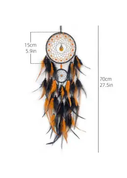 Plongez dans la magie des traditions amérindiennes avec cet attrape-rêves artisanal de 70 cm de long. Tissé à la main, orné de plumes noires et orange flamboyantes, il filtre les énergies et protège le sommeil en laissant passer uniquement les bons rêves. Un véritable objet de décoration chargé de symbolisme et de douceur.