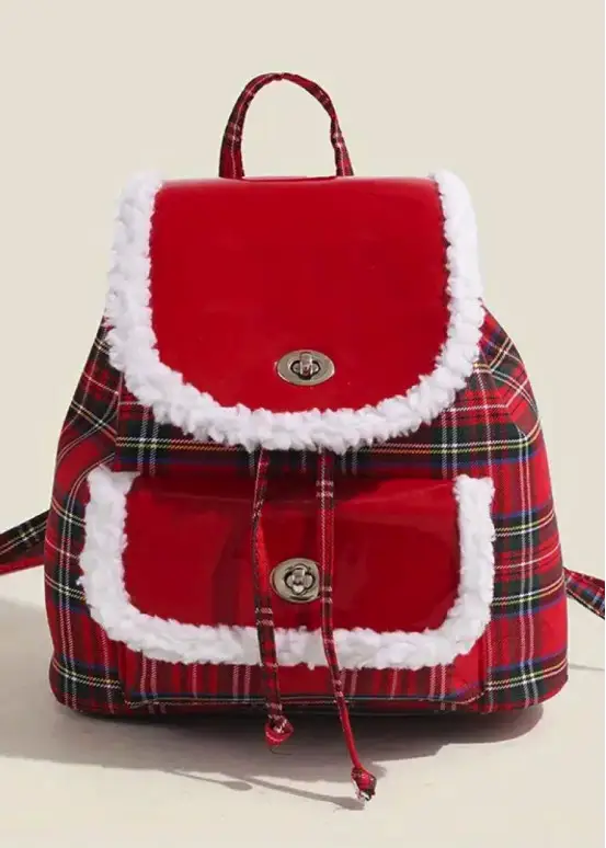 Ajoutez une touche festive et élégante à votre look avec ce sac à dos à carreaux rouges bordé de fausse fourrure blanche. Son design léger en PU et ses bretelles réglables en font un accessoire aussi pratique que tendance. Idéal pour les sorties hivernales, les voyages ou comme cadeau de Noël parfait pour elle !