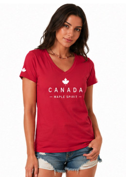 Affichez votre passion pour le Canada avec ce t-shirt femme col V Maple Spirit. Conçu en coton doux et respirant, il allie confort, élégance et identité canadienne avec son design épuré et sa feuille d’érable iconique.