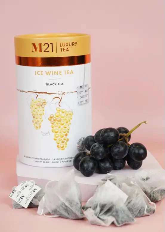 Présenté dans une boite de 12 ou 24 sachets de thé pyramide de luxe. (garantie sans plastique)