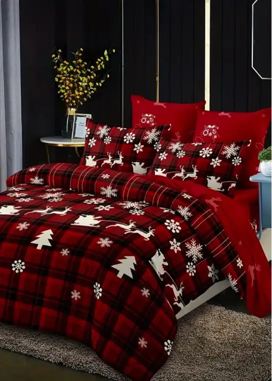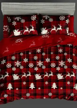 Scopri il nostro set di biancheria da letto da 3 pezzi a tema natalizio, caratterizzato da un motivo a quadretti con alci e fiocchi di neve, ideale per dare un tocco festoso alla tua camera da letto.