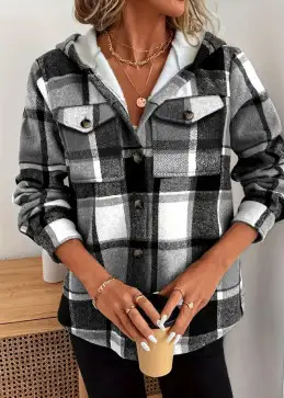 これを着て フリース裏地のチェック柄フード付きジャケット カナダの温かさがあなたを包み込むのをすぐに感じてください。スタイリッシュでありながら涼しい日にも対応できるようデザインされており、実用性、柔らかさ、美しさを兼ね備えています。彼女 表地100 % ポリエステル 織物には 柔らかいフリースの裏地、最初の寒い季節から絶対的な快適さを実現します。