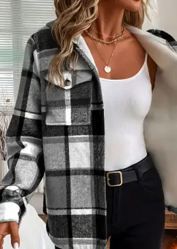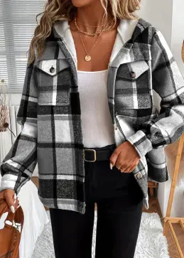 これを着て フリース裏地のチェック柄フード付きジャケット カナダの温かさがあなたを包み込むのをすぐに感じてください。スタイリッシュでありながら涼しい日にも対応できるようデザインされており、実用性、柔らかさ、美しさを兼ね備えています。彼女 表地100 % ポリエステル 織物には 柔らかいフリースの裏地、最初の寒い季節から絶対的な快適さを実現します。