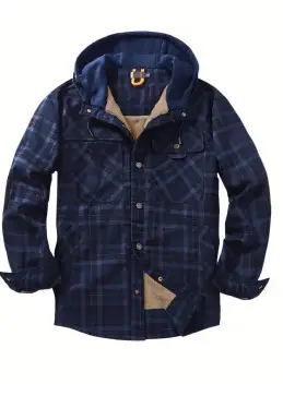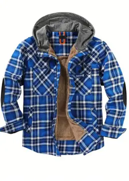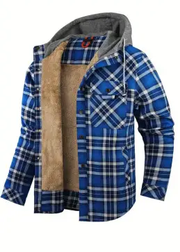赤と黒のチェックのフード付きシャツ - サーマル