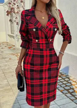 Met zijn chique reverskraag, gestructureerde lange mouwen en verfijnde knoopdetails is deze jurk perfect voor formele gelegenheden zoals elegante uitjes, naar kantoor of een etentje in de stad. Het tijdloze ruitjespatroon voegt een vleugje karakter en moderniteit toe.